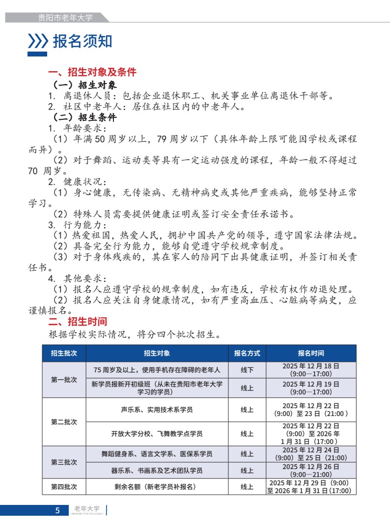 贵阳市老年大学2026年招生简章